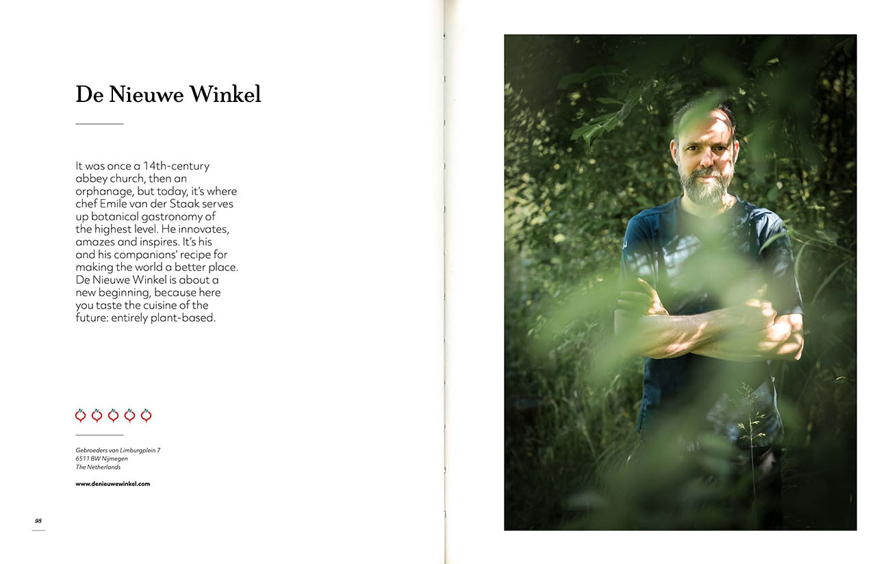 Participating restaurants : ’t Aards Paradijs, Alchémille, Bolenius, Brut172, De Nieuwe Winkel, De Vijf Seizoenen, El Invernadero, Gatblau, Humus x Hortense, L’Air des Sens, L’air du temps, L’Oustau de Baumanière, La Distillerie, La Salita, Le Vieux Château, Pollevie, Ricard Camarena, Vrijmoed, Xavier Pellicer, Yerba