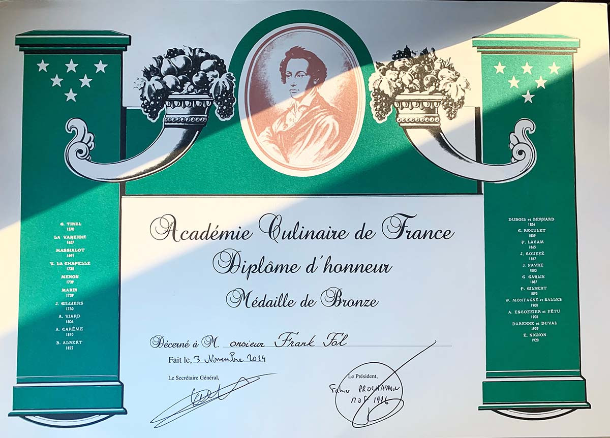 Chairman Frank Fol honoured by L'Academie Culinaire de France