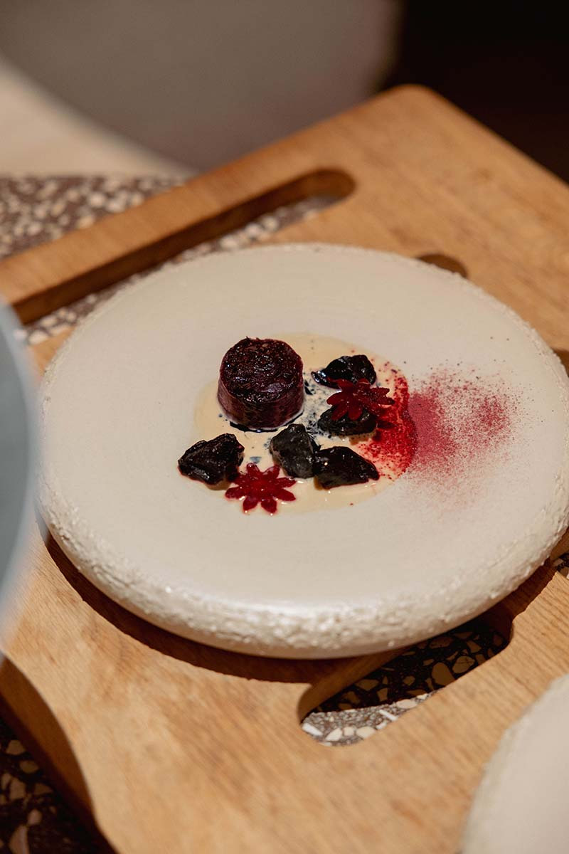 Intermediate course: Red cabbage | beetroot | black garlic gnocchi | Tomasu soy sauce