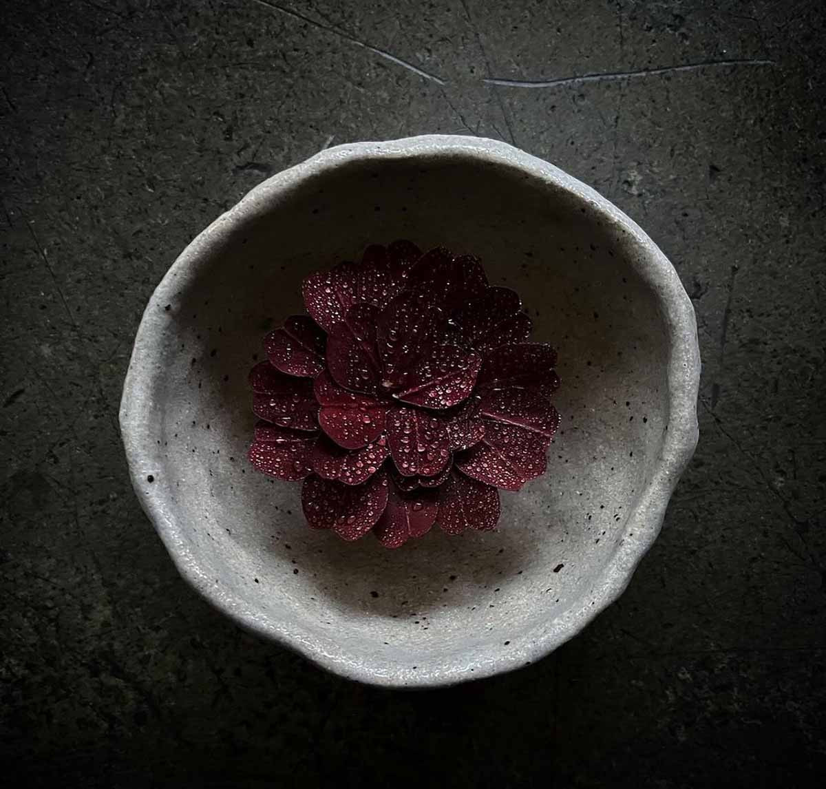 Keiko Kuwakino (best 'vegetable lady-chef of 2023) is headchef of Sanaburi (5 radishes). She works with what the mountains can give her. "We anticipate the seasons. It snows in our village for four months a year. The first winter I was here, I had nothing more than some tubers and root vegetables to cook with. Now, I spend the whole year working on my winter mise-en-place. In the spring, I ferment many of the fresh herbs that are abundant in the fields. And in the summer, we build a two-meter high pyramid, which acts as a kind of pantry for extra food for when the snow arrives. I often work six to twelve months in advance. Some fruits, plants and herbs are only available ten days a year. Then their peak season is already over. That means I can only work with it a few times a year. I look back at my recipes and notes from last year and then try - in the short time I have - to explore the flavors and possibilities of those hyper-local hyper-seasonal ingredients even further."