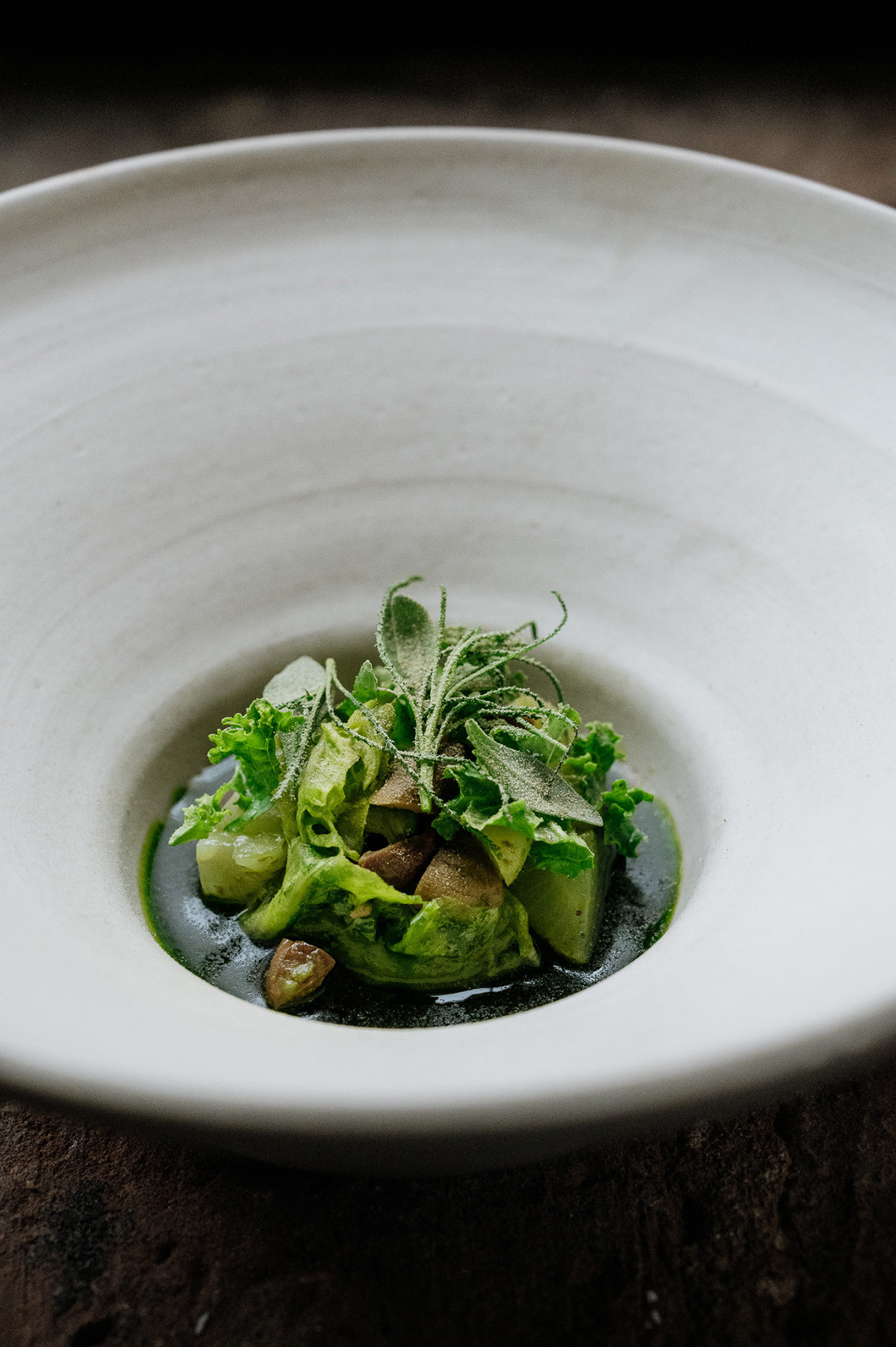 “Vegetables and fruits are the heart of our dishes. For example the “capucijner”. These marrowfat peas aka capuchines are a heritage legume which my father already grew. Ignored for a long time and now slowly getting back on our plates”. Koeleman adds: “And we use this for our skewer of pointed cabbage, we create a new variation every year! A 100% dish with our own ingredients in winter! All elements have been fermented, hydrated, smoked and preserved here. This year it comes with pine, sweet and sour rosepetals and a ‘ketjap’ of these capucijners.