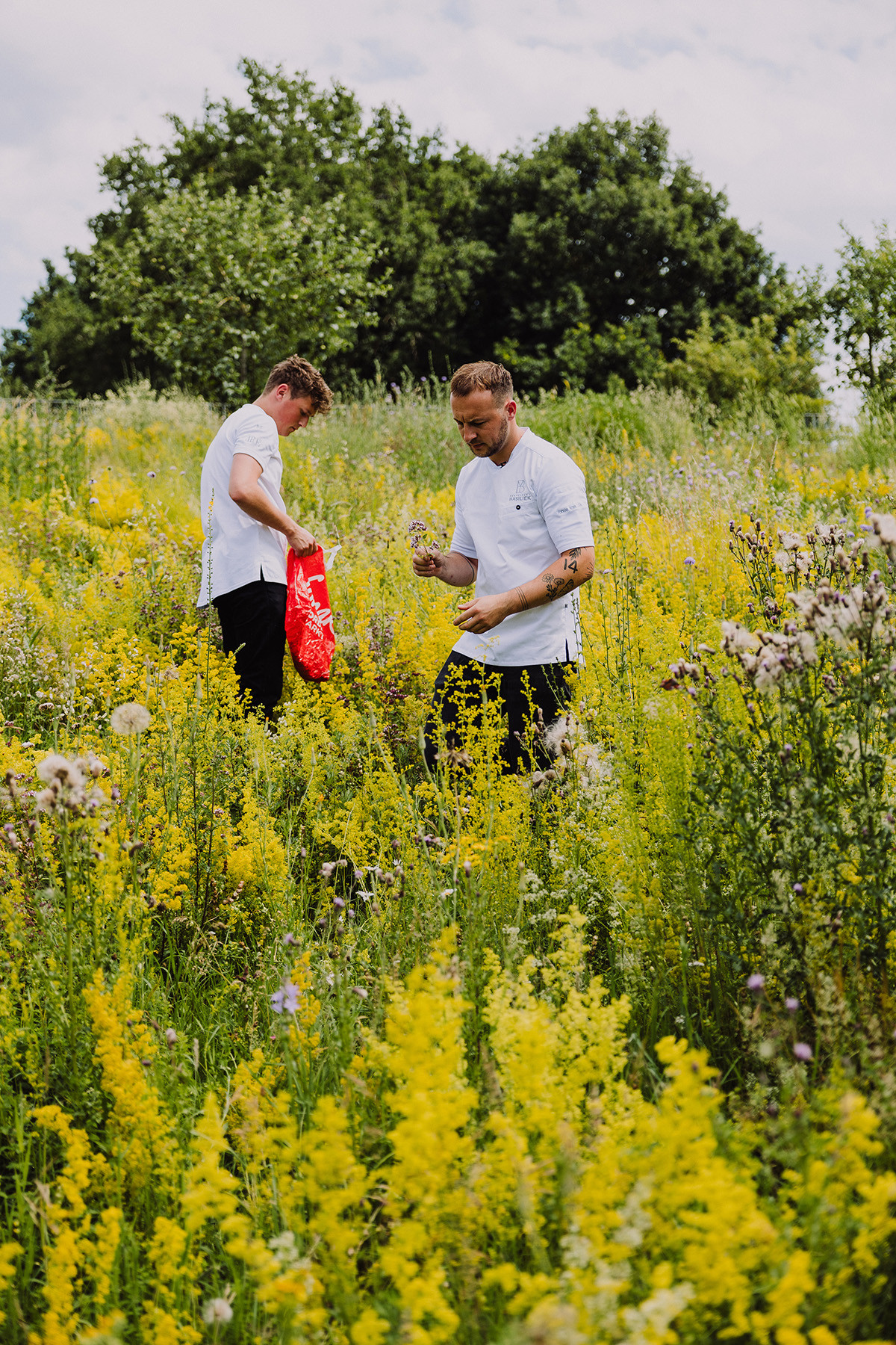 Lieven Lootens, chef at “t’ Aards paradijs’ (5 radishes) in Deinze (Belgium) gets the inspiration for his seasonal dishes from nature. Next to growing their own herbs and flowers he created a small ecosystem with local foodforests, regenerative farmers and orchards.