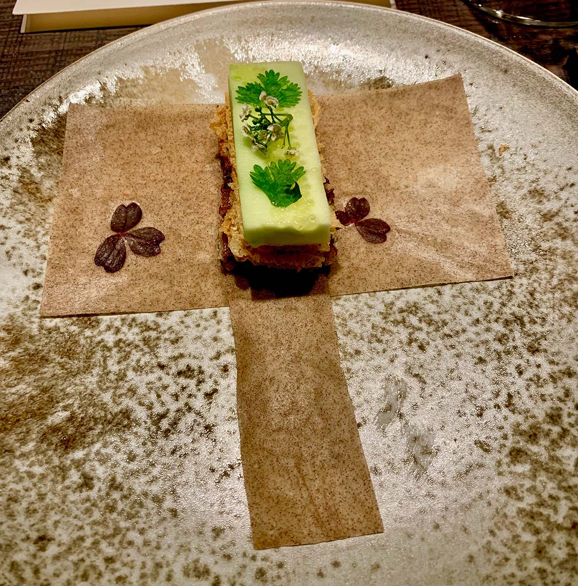 Buckwheat pancake – Crispy tofu – Cucumber – Pistache.