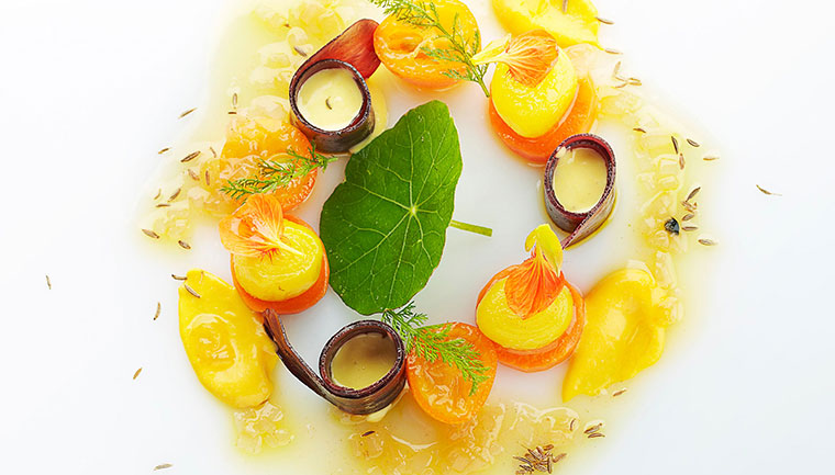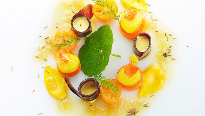 Lieven Lootens was the first chef in 2011 to win the title of Best Vegetable Restaurant for his restaurant. He plays with the flavors and textures of vegetables, herbs and fruit of mainly his own cultivation, which he processes in adventurous but balanced preparations in which modern cooking techniques are used functionally. From his vegetable menu are dishes such as turnip broth with chervil root, hazelnut milk and coconut foam and chard with bouillon of kalamansi and iris garlic.