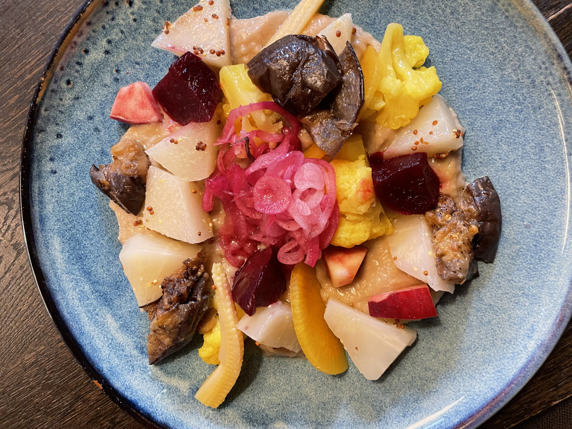 Situated in an old farmhouse, the restaurant offers dishes rich in vegetables and fruits, with a small amount of animal protein to her customers' preferences.